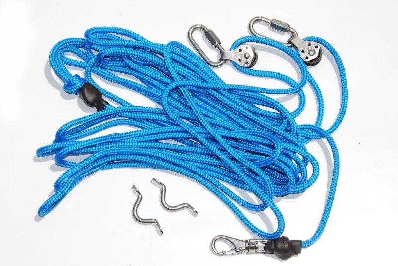 The anchor system allows the user to access the anchor from the seating position and uses a loop that runs between two pulley blocks that are fixed to saddles at either end (bow and stern) of the kayak. The swivel snap clip prevents line twisting plus allows the quick attachment and changeover of any number of anchor options available. The system is made using high quality braided polyester 6mm cord and suits kayaks that are longer than 4.3 meters in length. All components used are quality 316 grade stainless fittings. The anchor systems come with fastenings and saddles for easy attachment to all Viking and Ocean Kayak fishing models with moulded in inserts.
